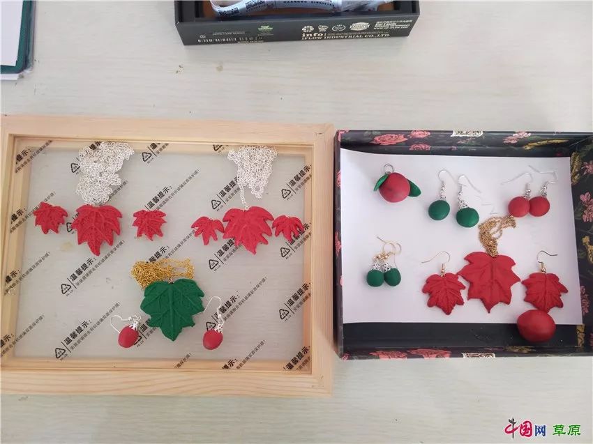 據了解,當地于2019年4月成立了烏日麗嘎沁手工藝專業合作社,采用“黨支部+合作社”的經營模式,現已有社員30余名。合作社著力打造“一村一品”,加快開發新產品,目前已經涵蓋剪紙、刻畫、編織、刺繡、皮藝等多個門類,開發了軟陶泥制作的耳環、項鏈、鑰匙鏈等飾品,錢包、卡包、鑰匙包、杯墊等皮藝產品,以及純手工編織的鞋帽、十字繡鞋墊等各類產品。