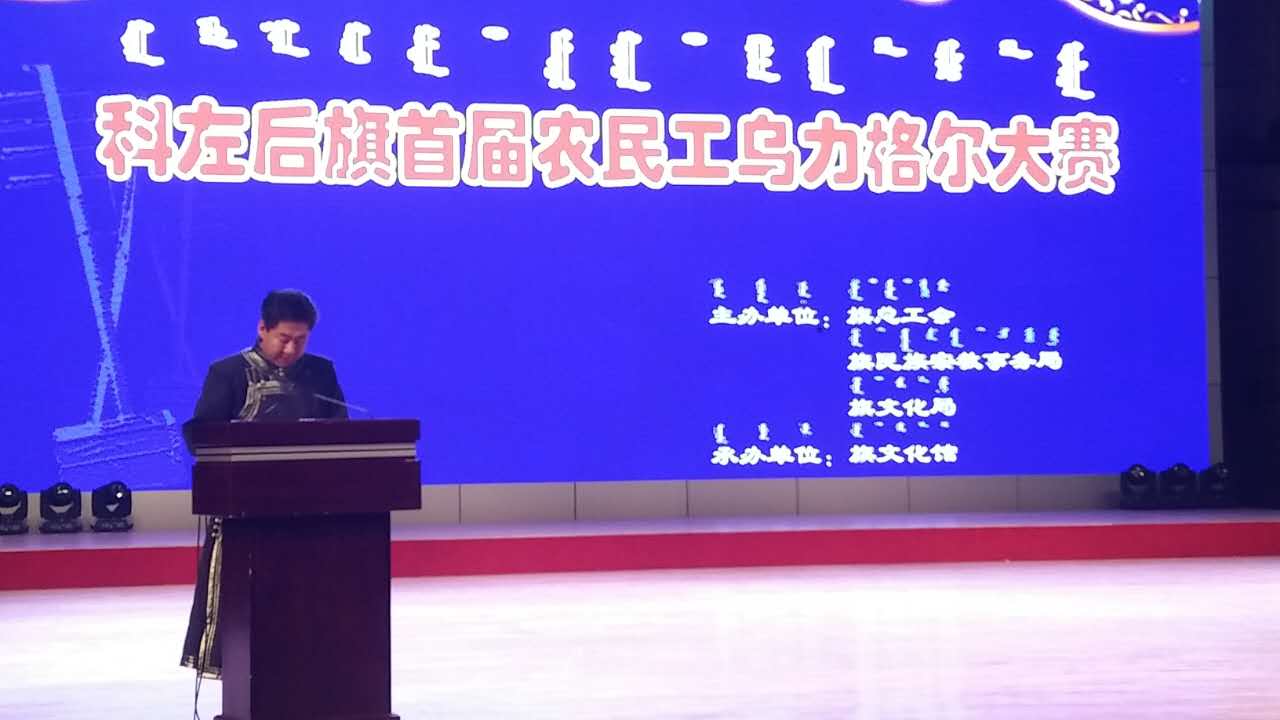為了深入貫徹落實習近平總書記在全國文藝工作座談會上的重要講話精神,使通遼市委文化工作(烏力格爾專題)座談會議要求落到實處,更好地弘揚和傳承地方特色文化,保護好烏力格爾說唱藝術,滿足人民群眾多樣化的精神文化需求,于11月16日至18日,科左后旗民宗局、總工會、文化局聯合舉辦了全旗首屆農民工烏力格爾大賽。