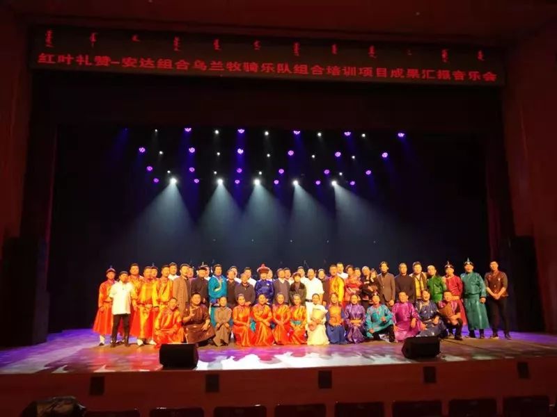 12月13日,紅葉禮贊—安達組合烏蘭牧騎樂隊組合培訓項目成果匯報音樂會在內蒙古藝術學院啟幕。中宣部、自治區黨委宣傳部、自治區文旅廳相關領導及市、旗領導于沨、于德泉、李凌芬出席音樂會。科左后旗烏蘭牧騎“雙合爾”組合參加演出。此次音樂會,是自治區黨委宣傳部與內蒙古藝術學院聯合實施的“安達組合烏蘭牧騎樂隊組合培訓”項目成果的匯報演出。2019年7月8日,內蒙古藝術學院安達組合與科左后旗文化和旅游局簽訂了“雙合爾組合”專項培養項目合作意向書,通過“點對點”專項培訓和“傳、幫、帶”,演員們的表演、創作藝術技藝及協作能力得到明顯提升,文化視野得以進一步開闊。參加此次音樂會,不僅有助于提升“雙合爾”組合影響力和知名度,更是加深了與高校和兄弟組合之間的交流學習,對傳承烏蘭牧騎經典、弘揚烏蘭牧騎精神、培養烏蘭牧騎人才具有十分重要的意義。