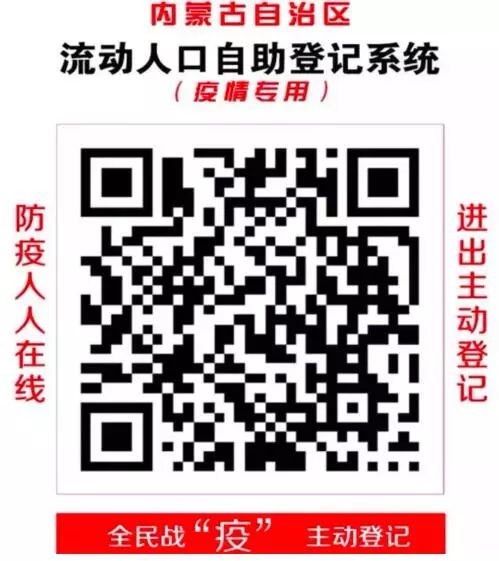 2、流動人口自助登記系統。凡到我旗的流動人口、暫住人口(跨盟市、旗縣流動人員),必須主動掃描“內蒙古自治區流動人口自助登記系統”二維碼自主登記。