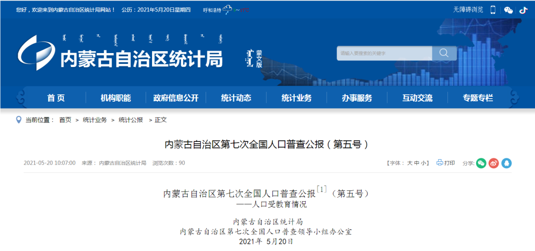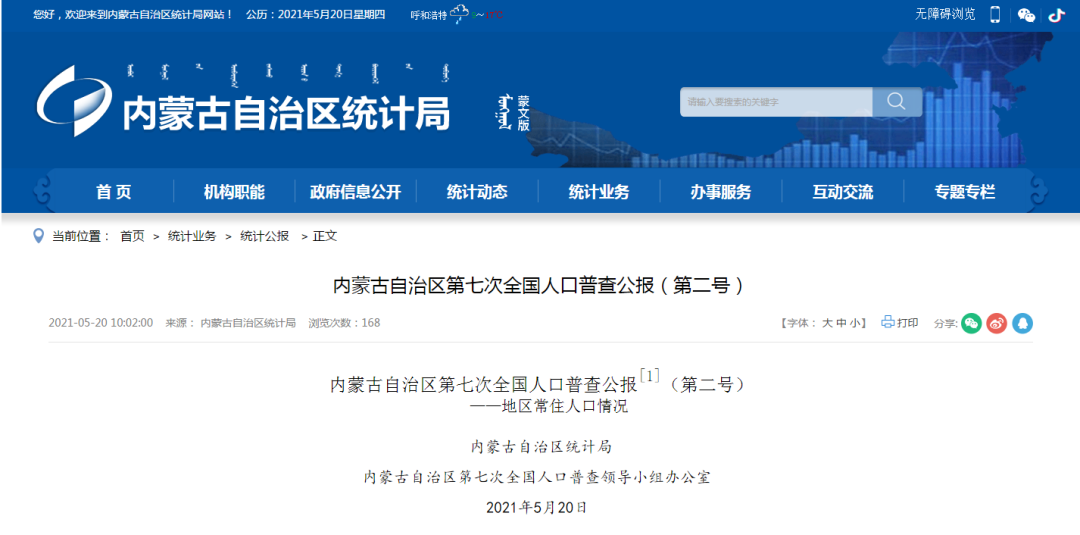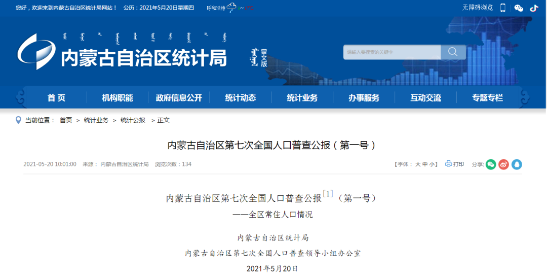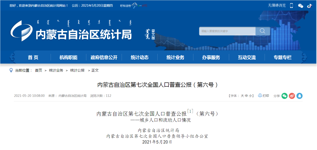 內蒙古自治區第七次全國人口普查公報[1]