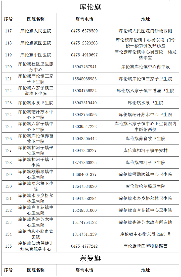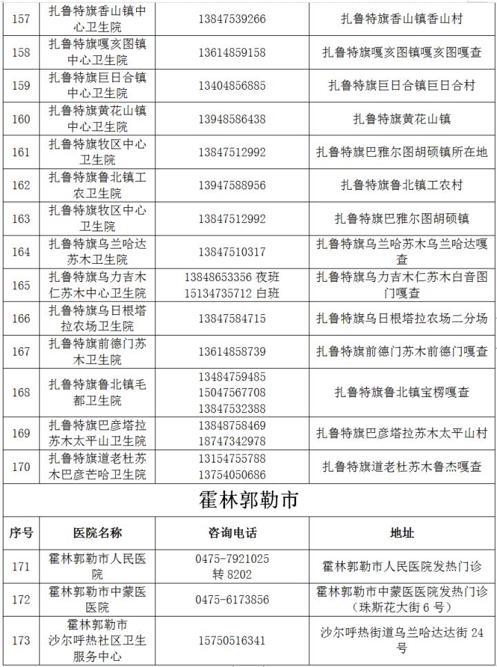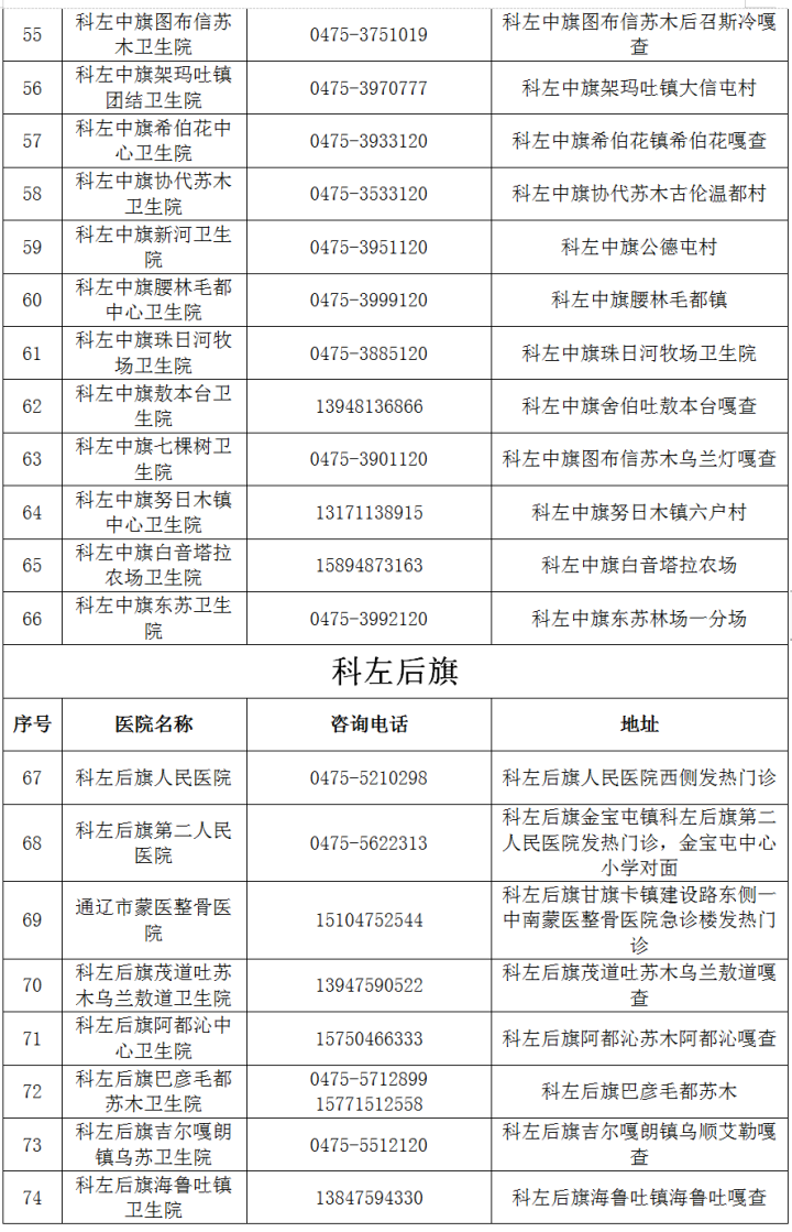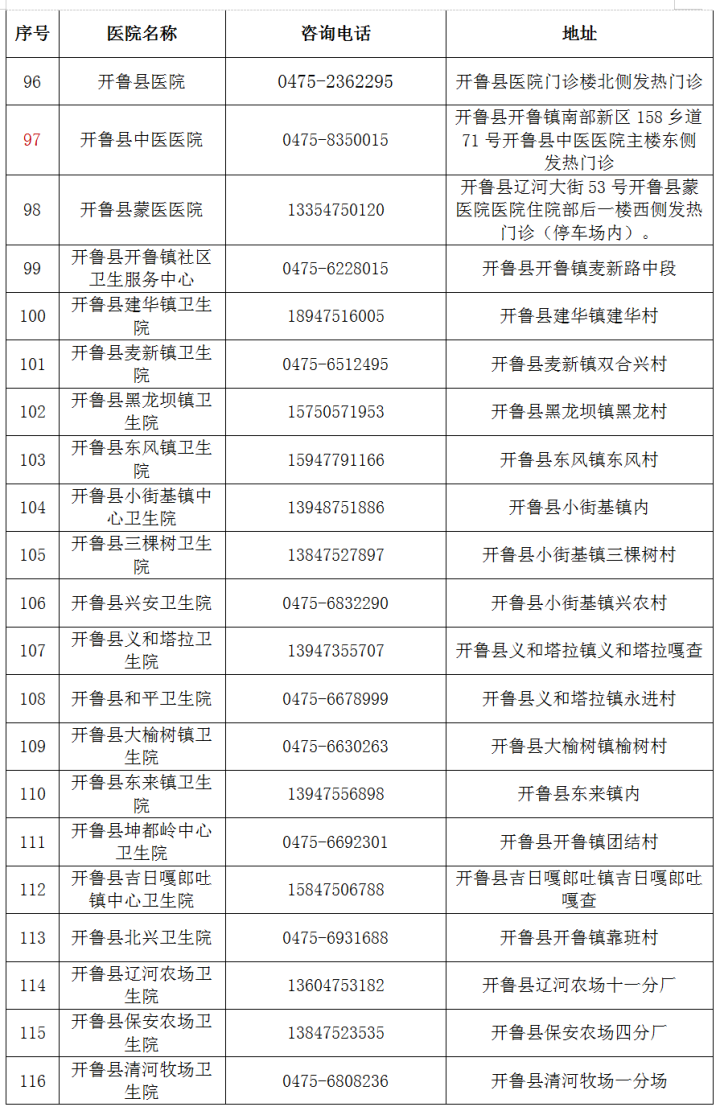 最新!通遼市發熱門診(診室)醫療機構名單