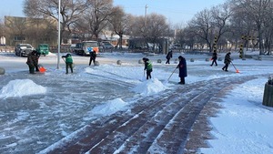 2月10日一早城鎮公共事業服務中心及時組織本單位全體職工對所屬轄區開始了清除路面積雪的緊張工作。此次清雪采取“人機結合”作業模式,主要對轄區內和各公園的人行道等地進行積雪掃除并放置提示牌提醒游客注意防滑。同時對城區內的所有主要交通干道進行集中清理并裝車,經過一上午的清理,原本濕滑難行的道路變得整潔又干凈,確保了群眾暢通安全出行及城區整潔。
