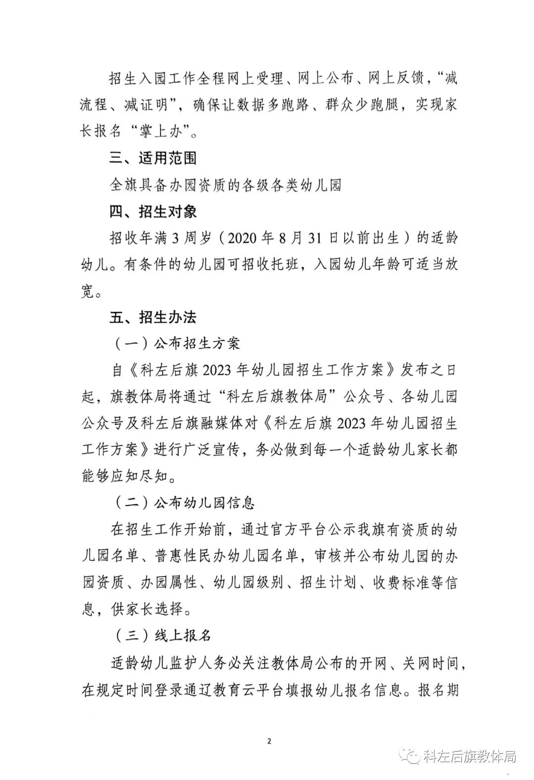 科左后旗2023年秋季幼兒園招生工作方案