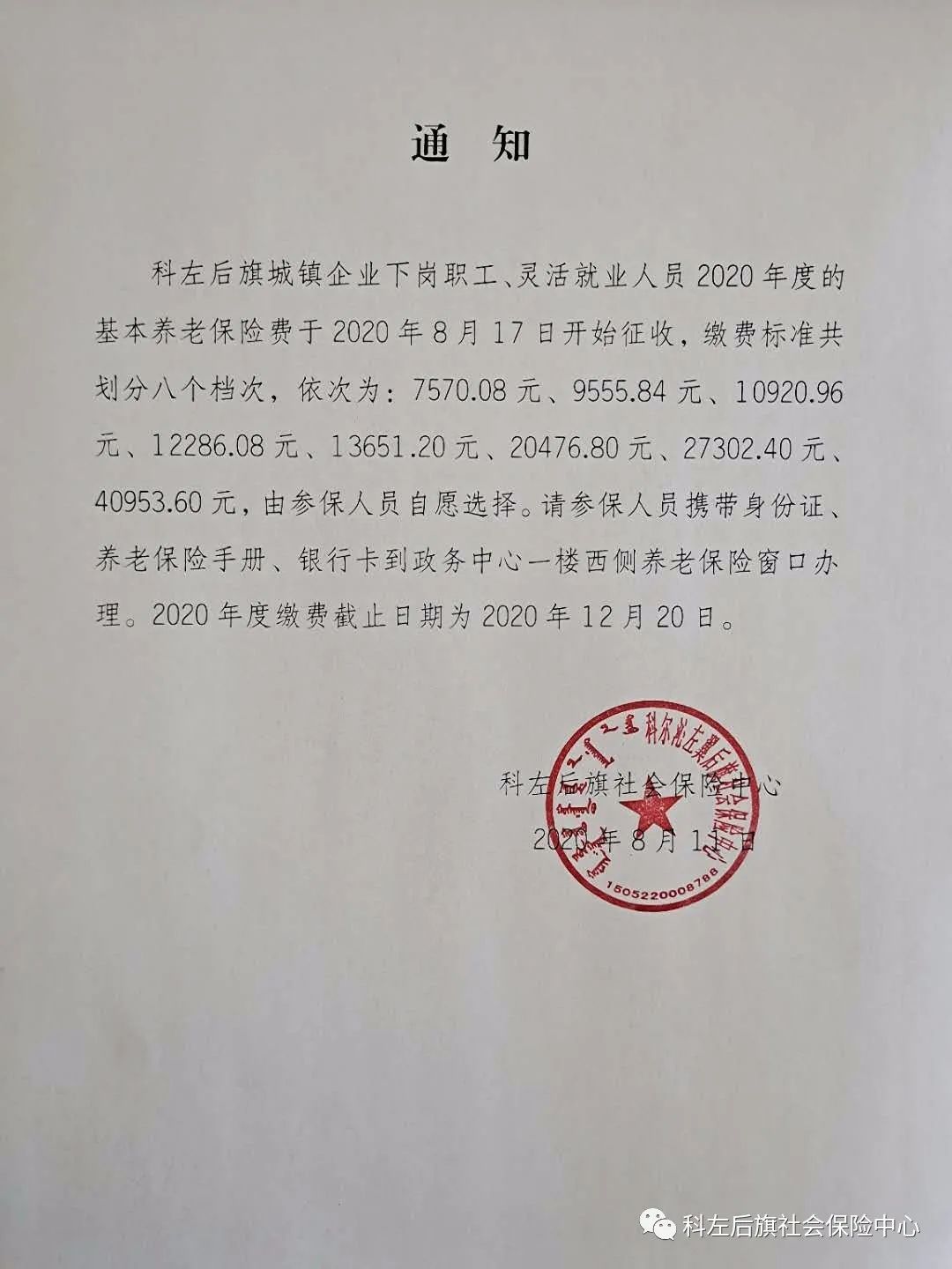 2020年養老保險繳費檔次已公布,8月17日開始征收!